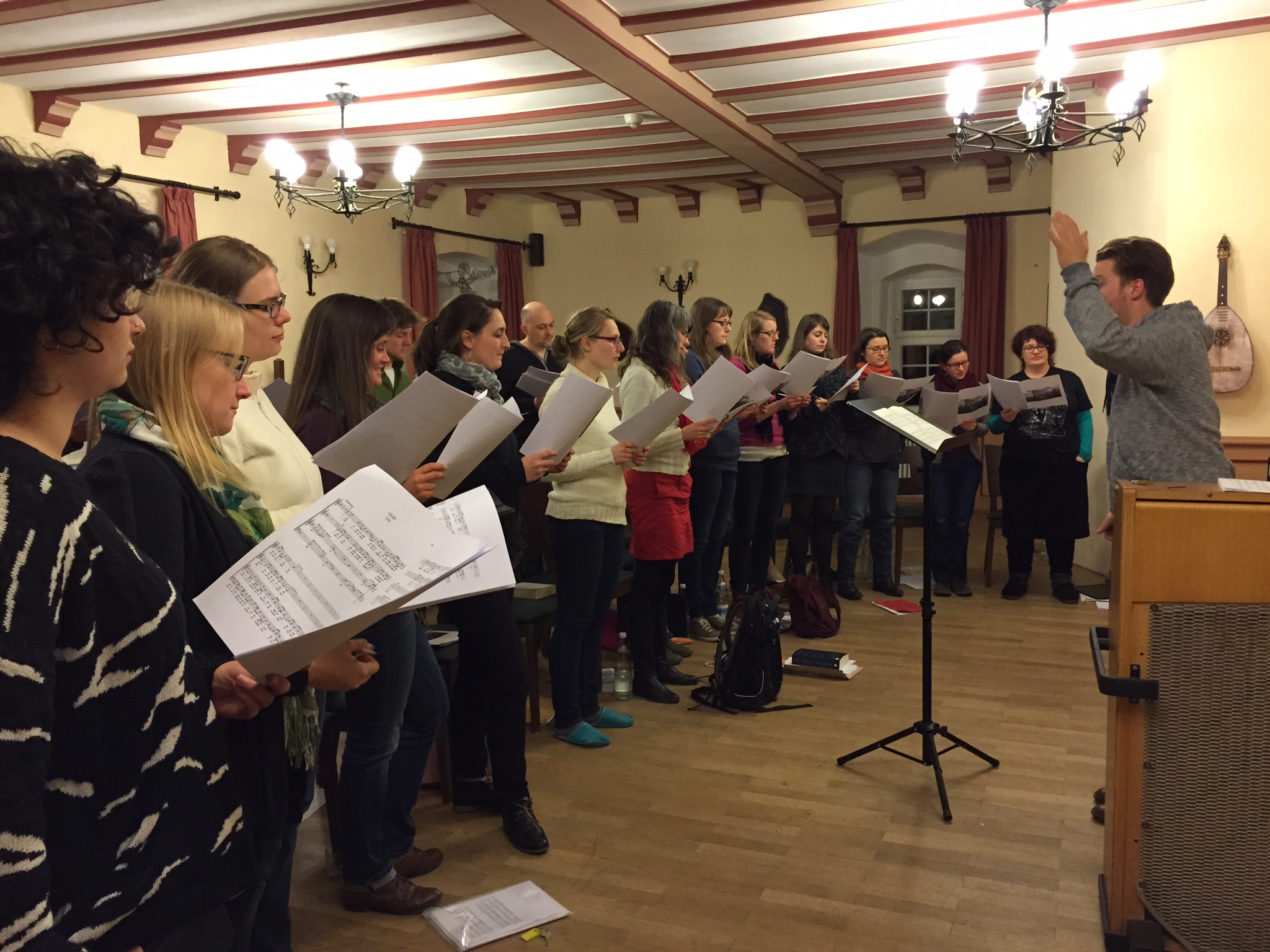 Nach dieser ersten „Tuttiprobe“ am Freitagabend ließen die Sänger den Abend gemeinsam gemütlich ausklingen. Am nächsten Morgen wurde direkt nach dem Frühstück weiter geprobt. Diesmal war es eine reine Frauenprobe, im Gegensatz zu den gewohnten gemeinsamen Proben. Die Kammerchormitglieder übten den ganzen Samstag, mit kleinen Pausen. Am Abend folgte wieder ein gemütlicher Abend in gemeinsamer Runde.