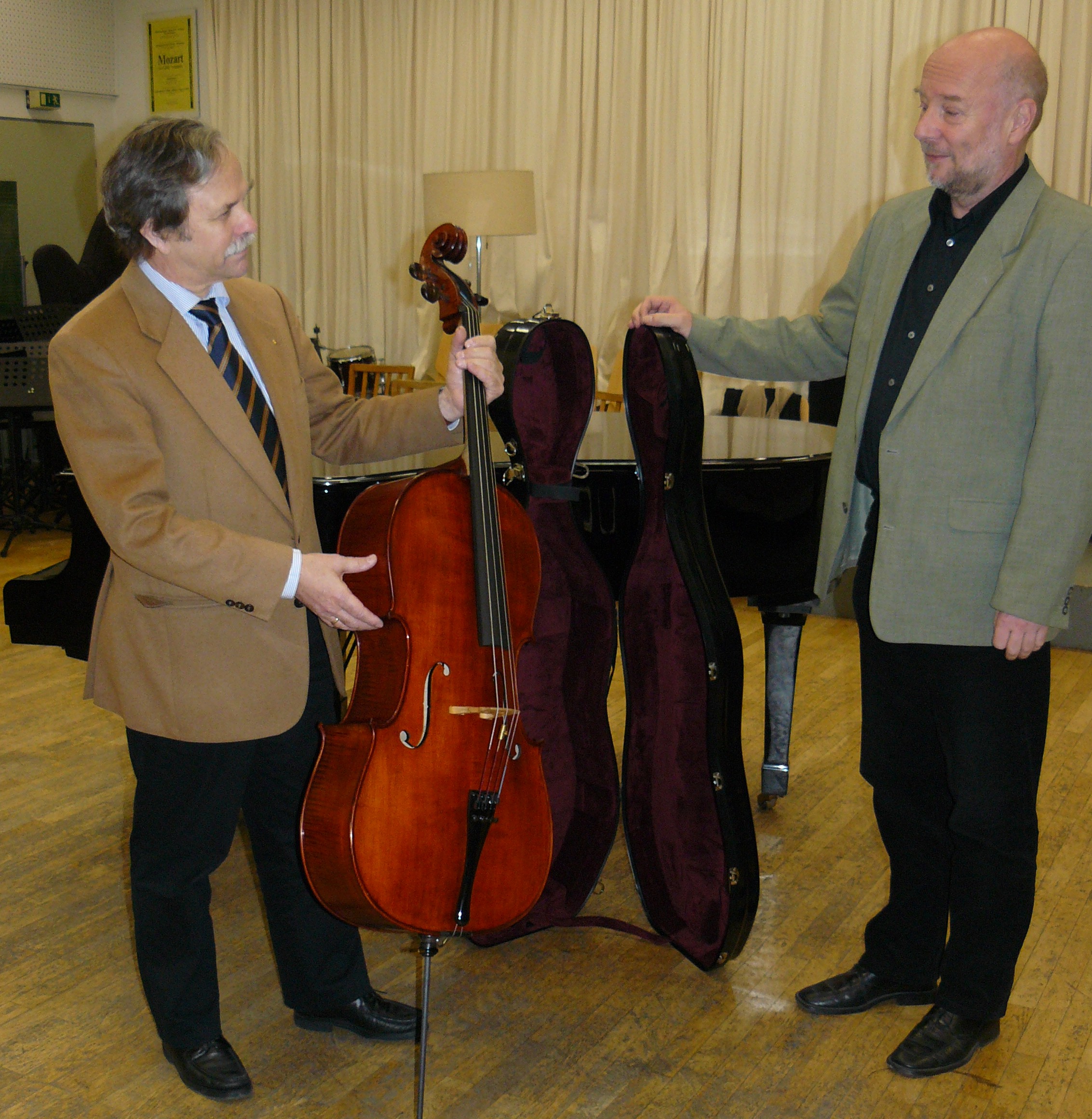 9.12.2008 | Überreichung des Cellos „in memoriam Rainer Cadenbach“ an den Akad. Musikdirektor Walter Mik durch Christian Scheiter, Vorsitzender der GFSM