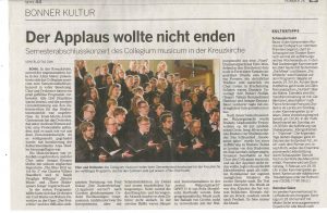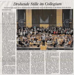 Bericht des Bonner General-Anzeigers über die drohende Schließung des Collegium musicum.
