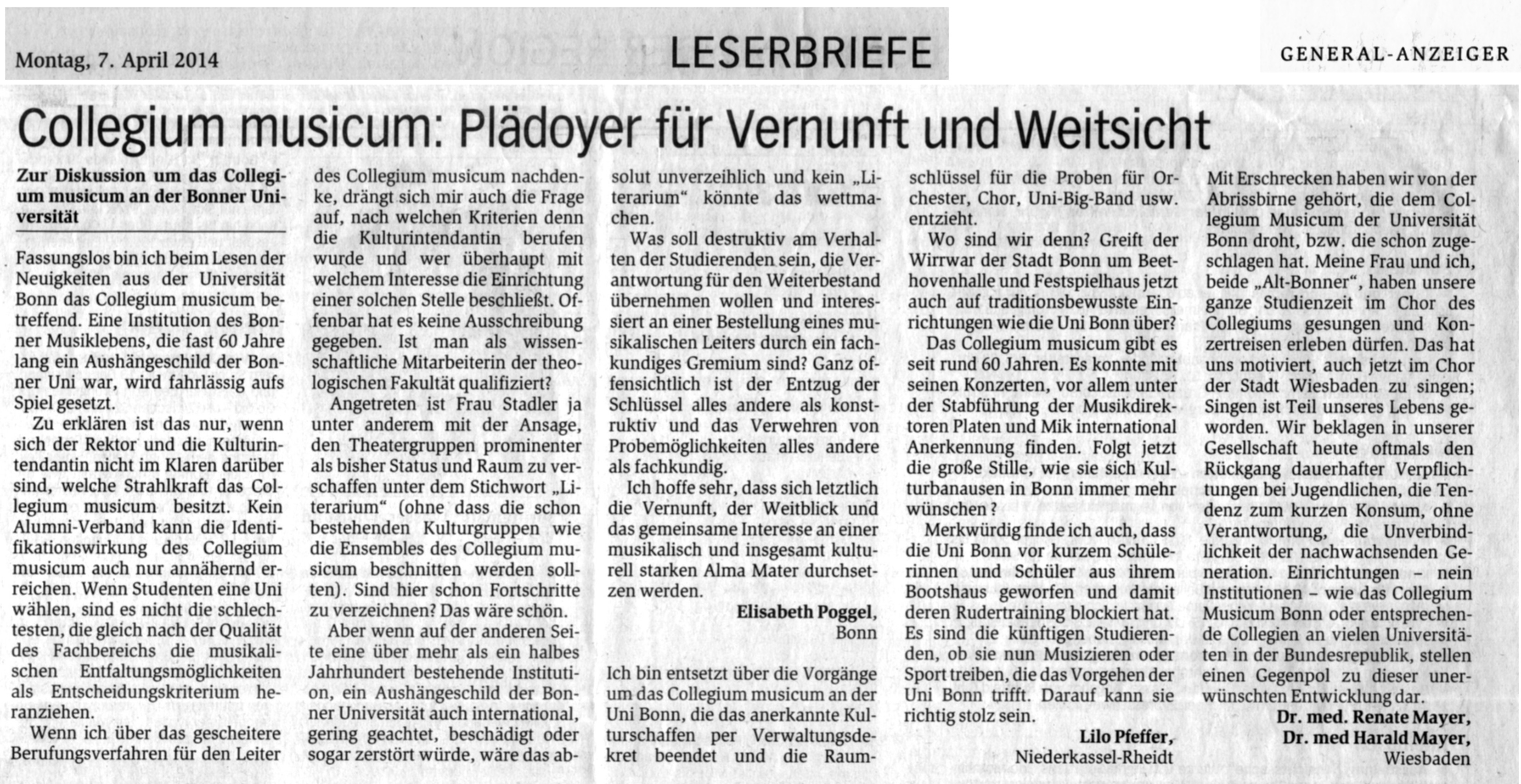 Leserbriefe an den General-Anzeiger,