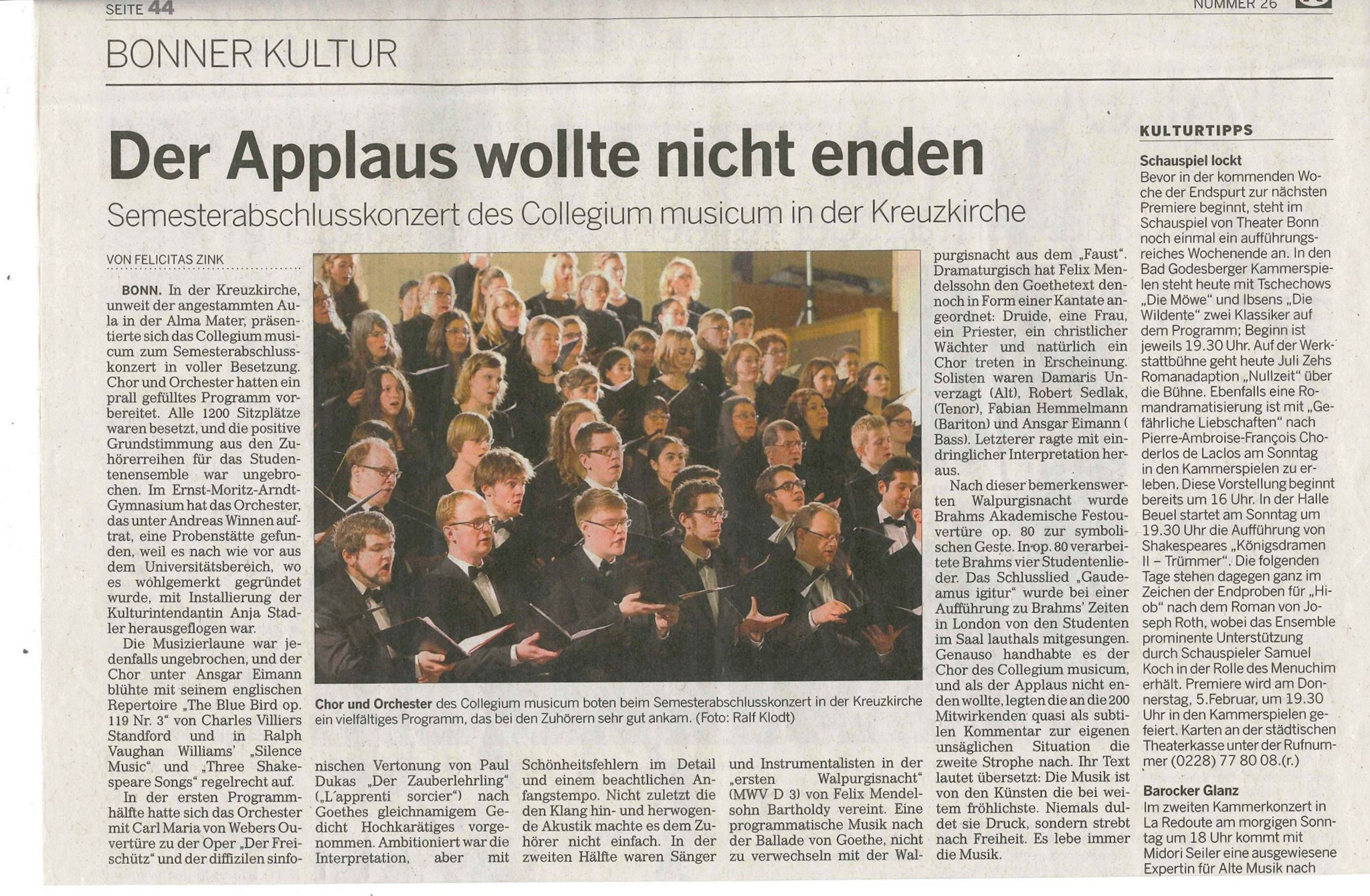 Betrifft: Leserbrief zum Feuilletonbericht vom 2.4. zum Collegium Musicum