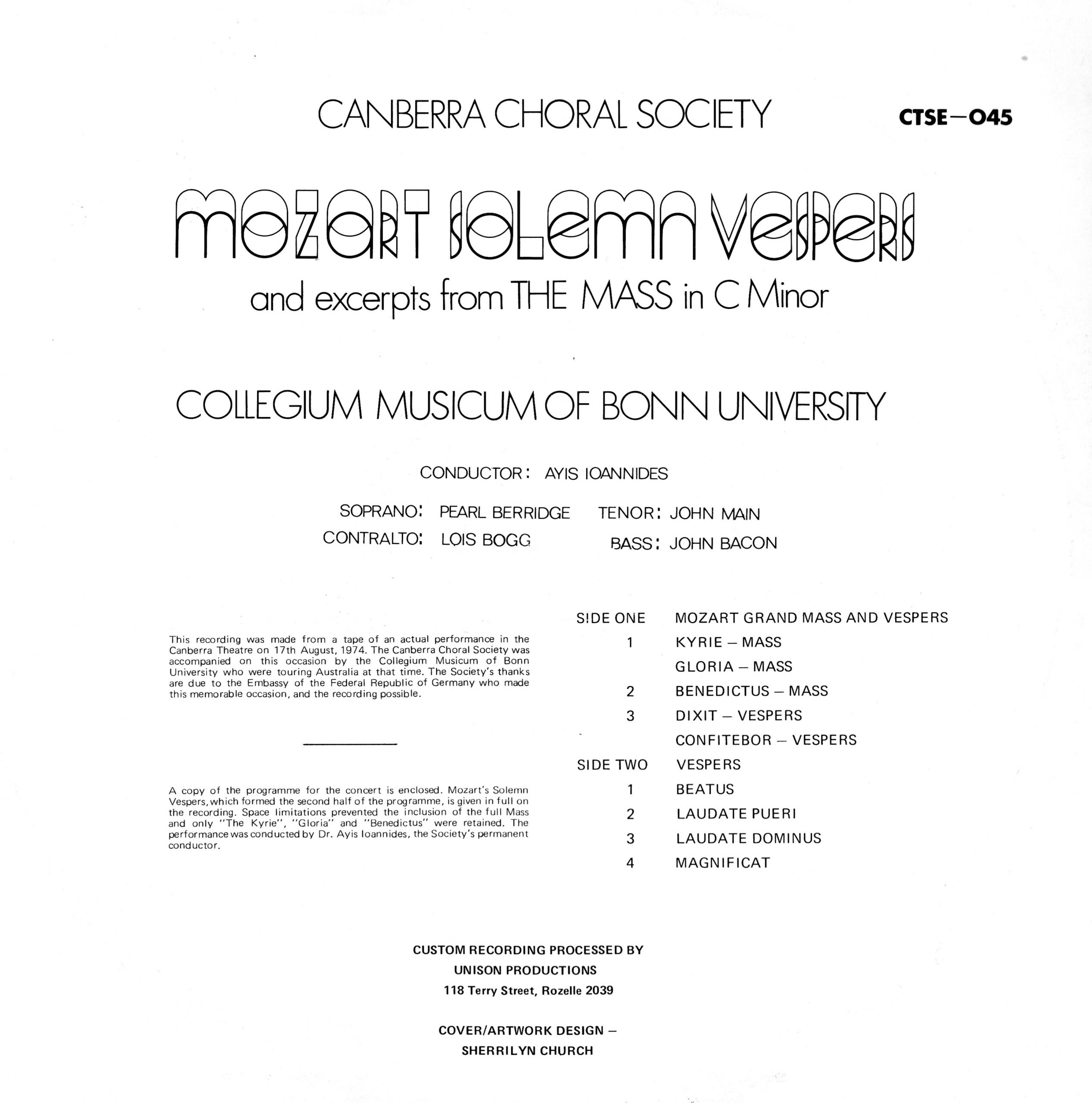 1974_08_17 LP Cover Mozart Canberra 2