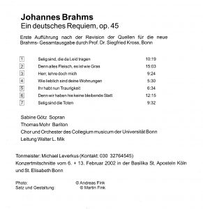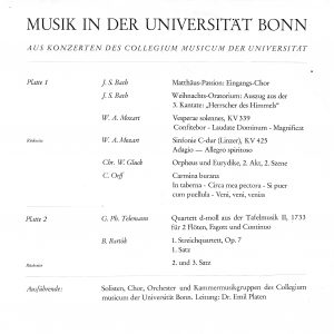 Tonaufnahmen des Collegium musicum der Universität Bonn
