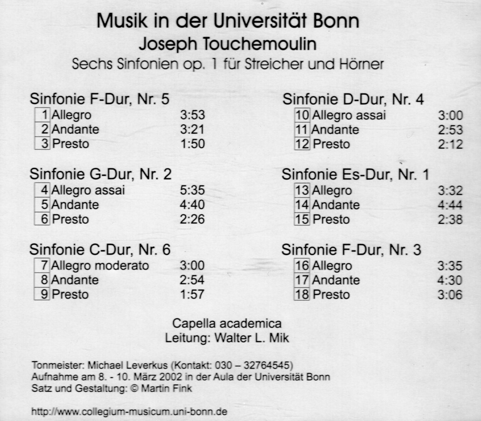 Tonaufnahmen des Collegium musicum der Universität Bonn
