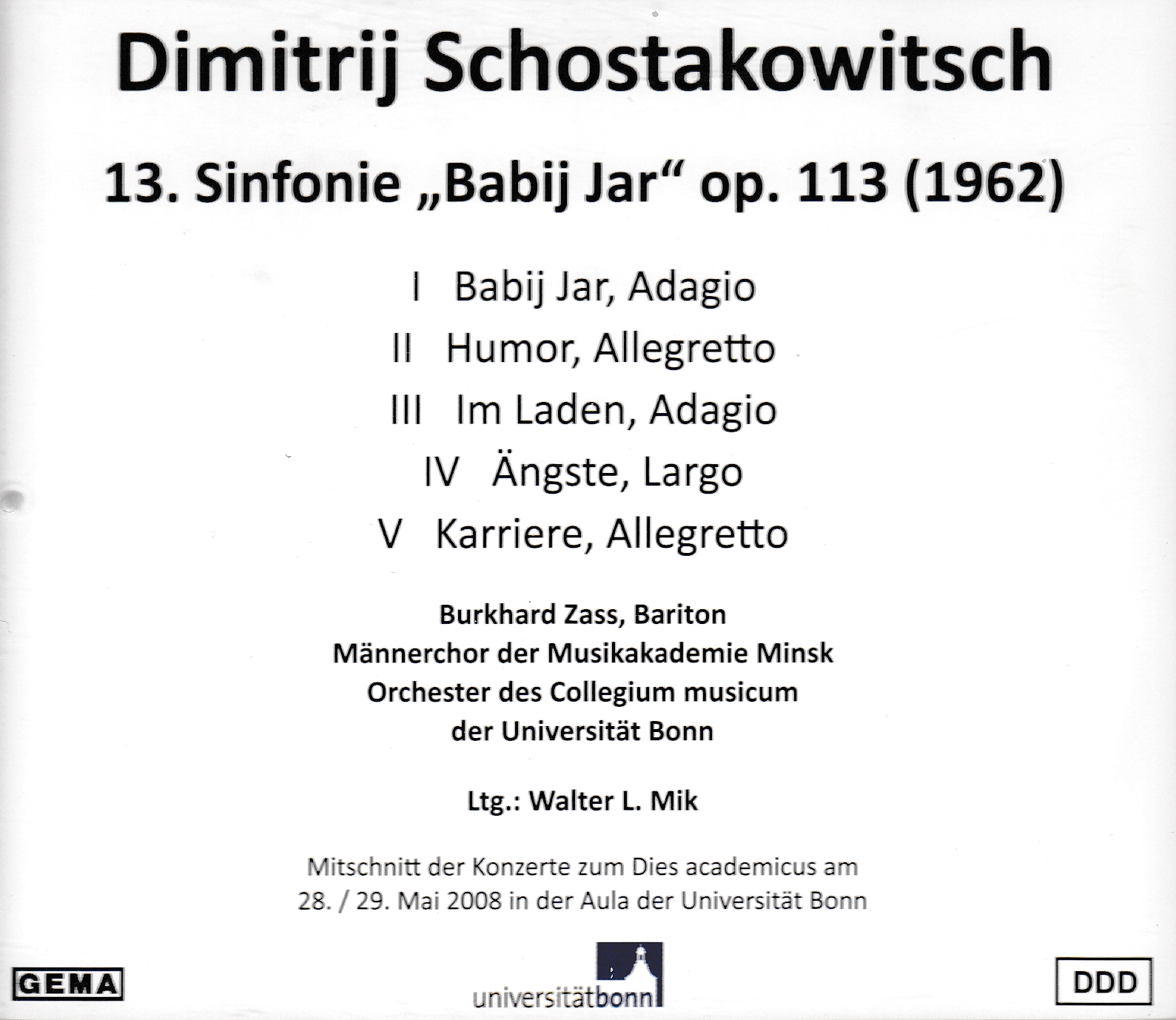 Die originalen Tonträger sind  – mit Ausnahme der CD von 2008 mit der Aufnahme der 13. Sinfonie von Schostakowitsch – bis auf wenige Restexemplare leider vergriffen.