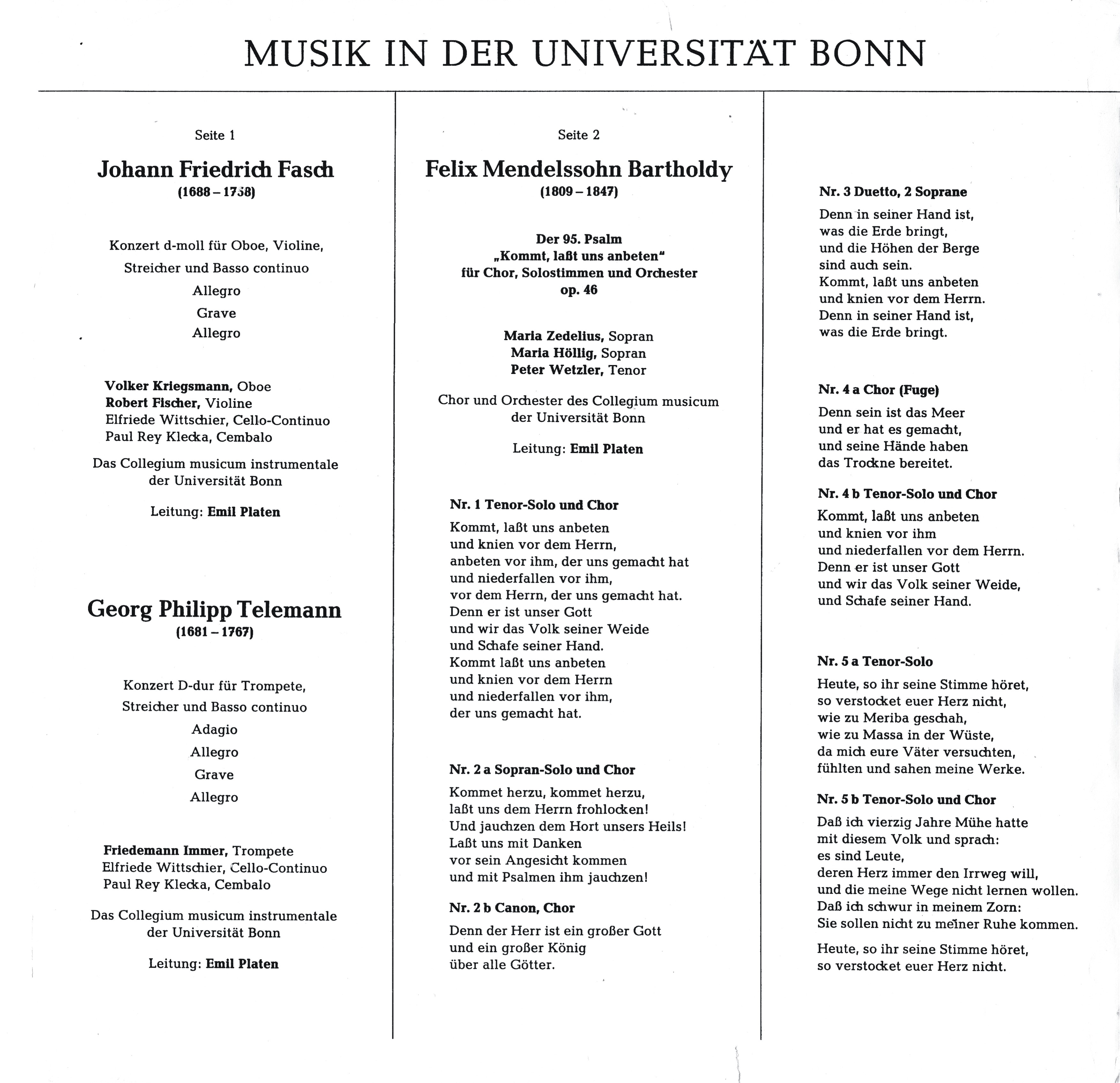 Der damalige Akademische Musikdirektor, Prof. Dr. Emil Platen, schrieb dazu ein Geleitwort:
